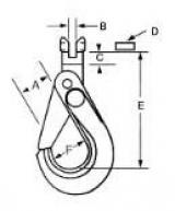 | Size | W.L.L. in lbs | A | B | C | D | E | F | Approx. wt. each in lbs. |