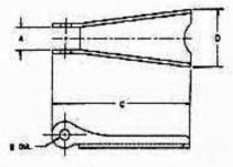 | Hook Size Carbon | Hook Size Alloy | Weight ea. in lbs. | A | B | C | D |
