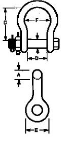 | Size (A) | Working Load Limit in Tons | Bolt Diam. in Inches (B) | Mouth Opening (D) | Approx. Wt. Each in Pounds | Dimensions in Inches - C | Dimensions in Inches - E | Dimensions in Inches - F |