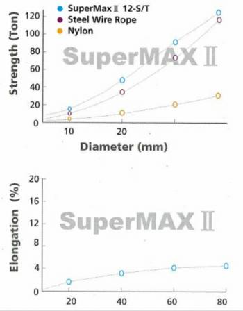 *SuperMax® II is the latest development of ultra high modecular weight polyethylene (UHMWPE), Dyneema® SK-75, fiber braided rope utilizing DSR's own rope design and manufacturing know-how's.